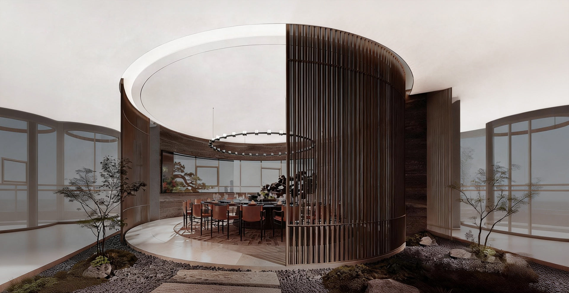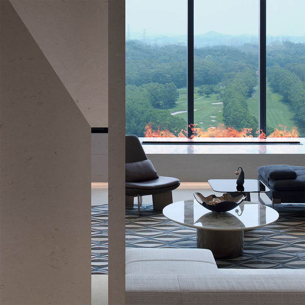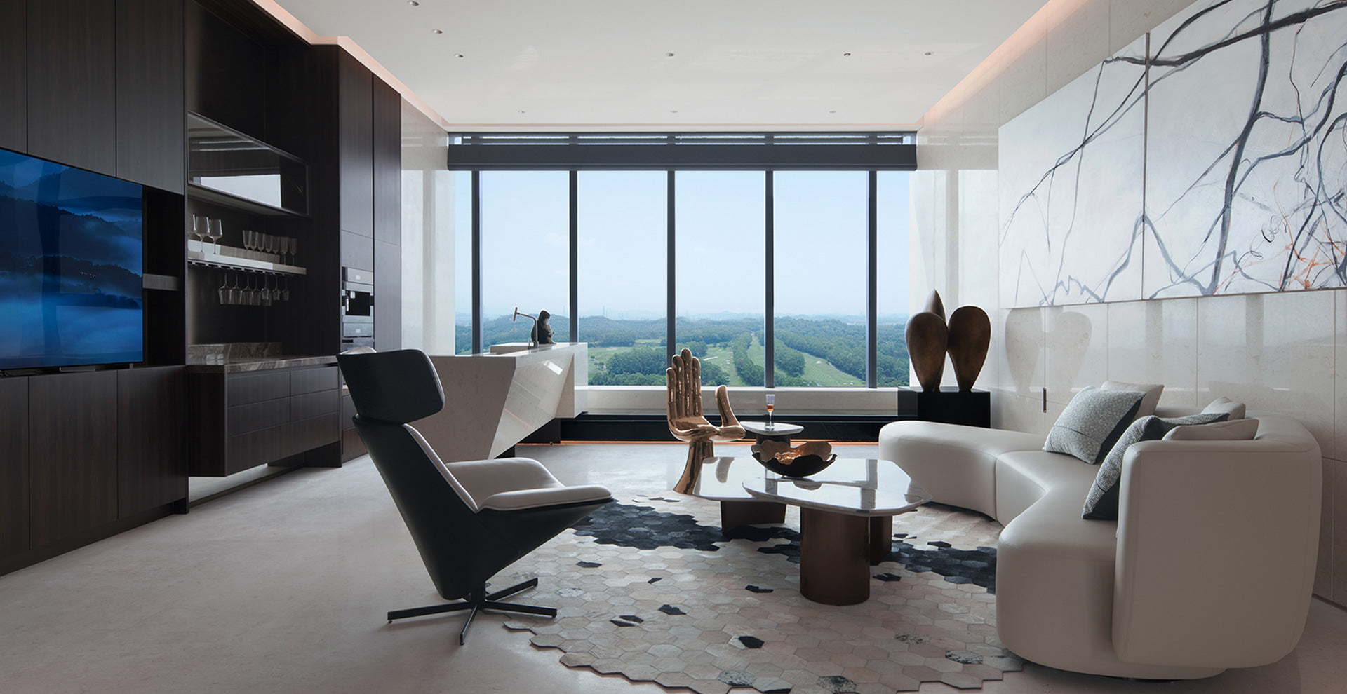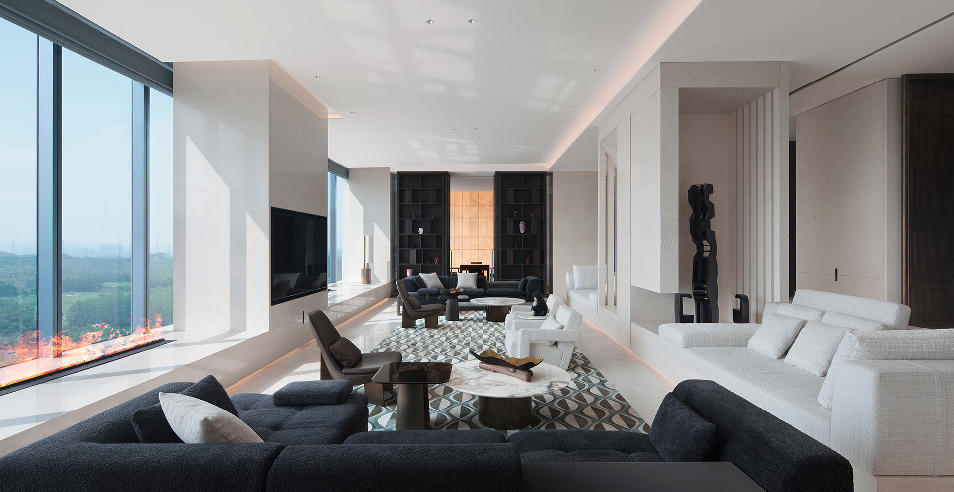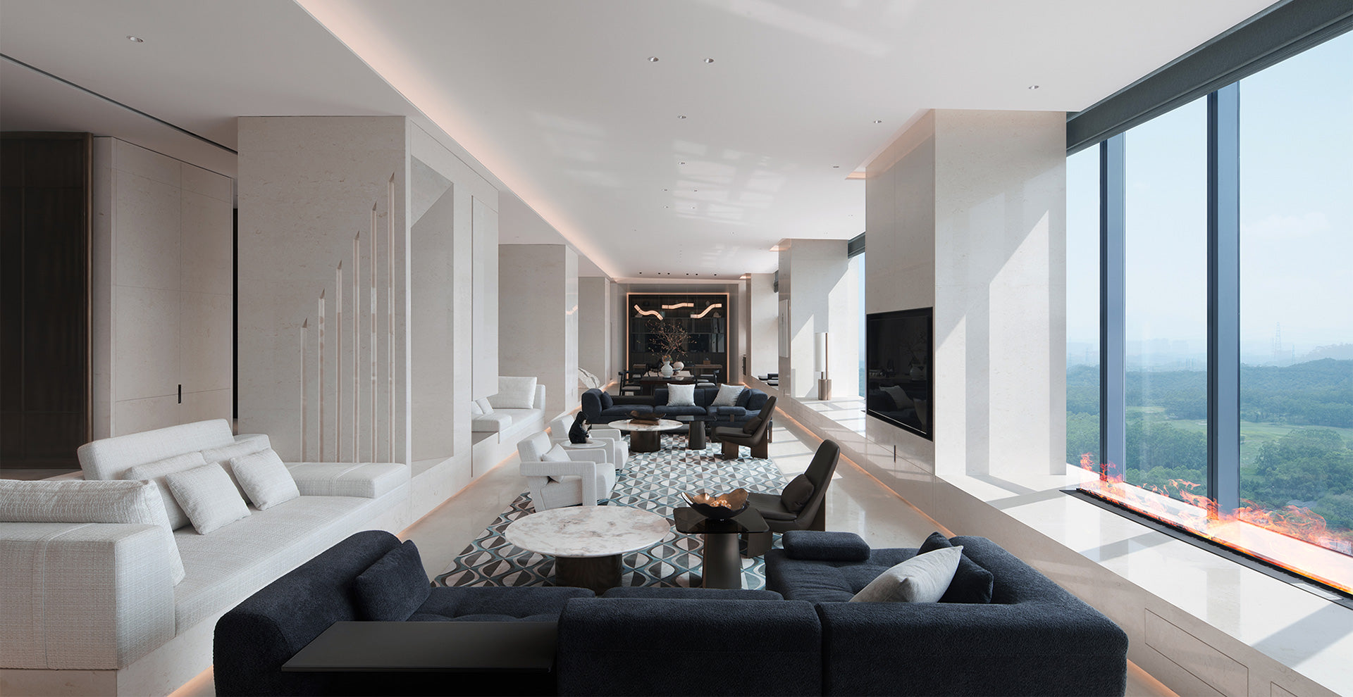 La lussuosa club house di Shenzhen, in Cina, vanta una serie di spazi abitativi personalizzati di alta gamma, un ristorante esclusivo e una raffinata sala da tè, tutti pensati per offrire un'esperienza di vita sofisticata.