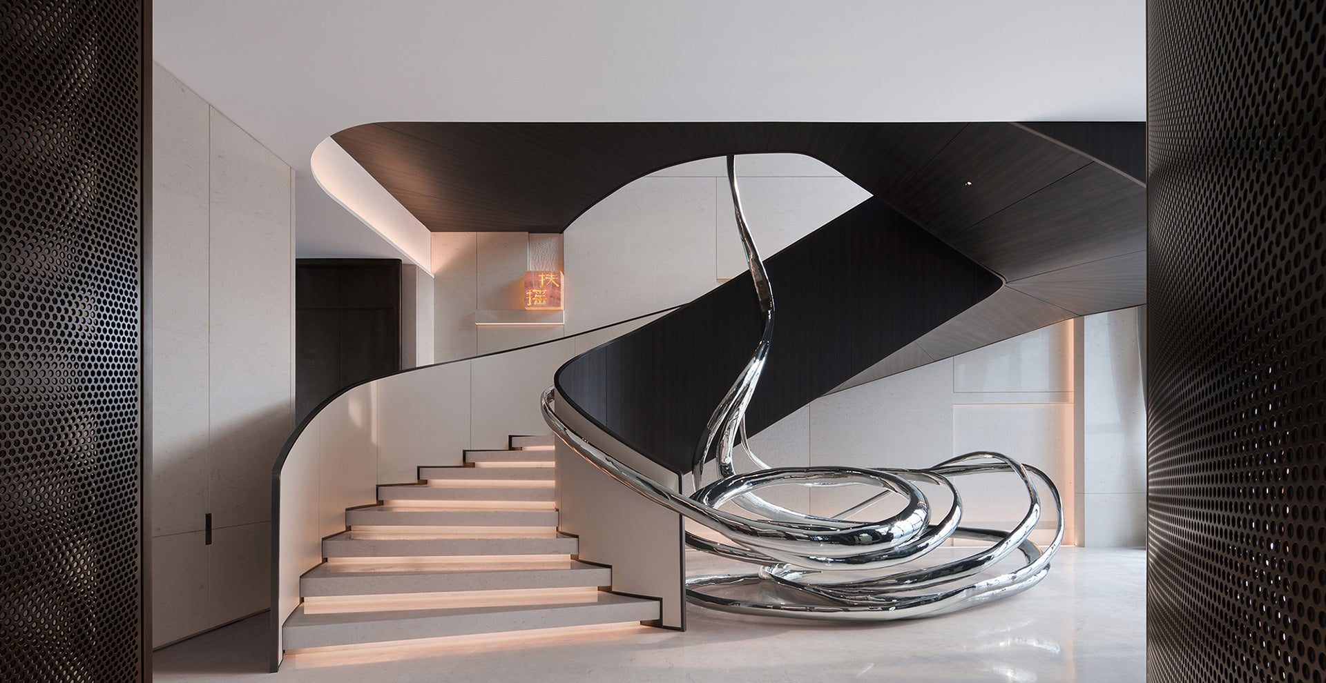 Dilise progetta un'ingegnosa scala a chiocciola di lusso che diventa il fulcro scultoreo dello spazio.