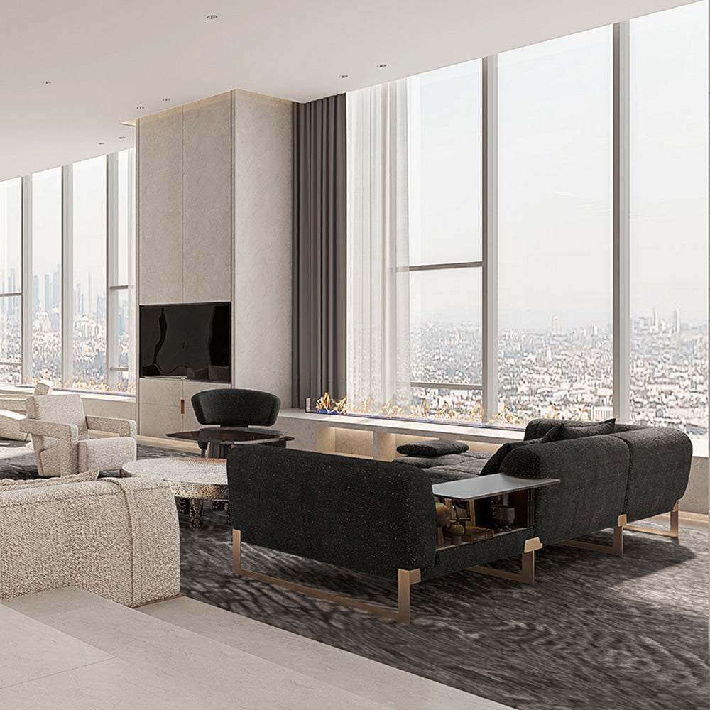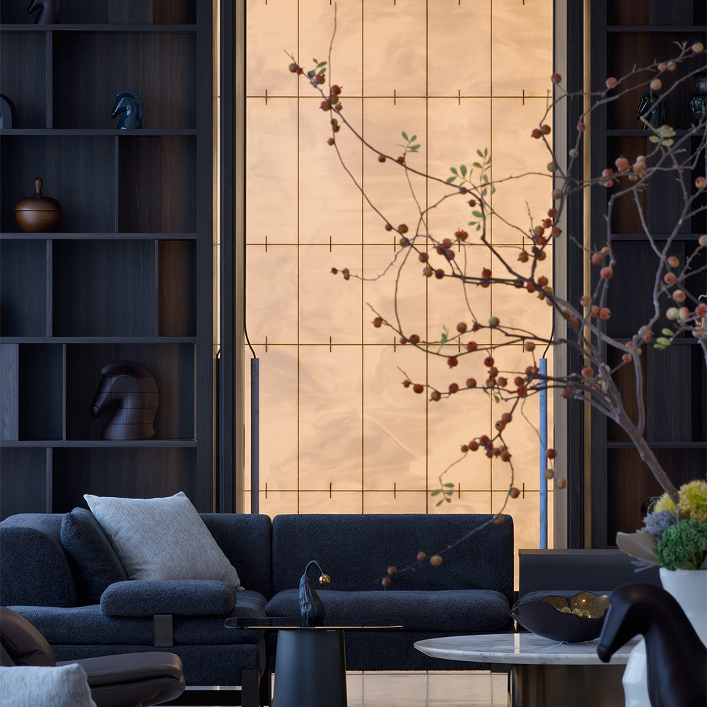 Il soggiorno e la sala da tè integrati si distinguono come spazi immersivi personalizzati e caratteristici, ampliando l'apertura visiva e coltivando un'atmosfera serena e culturale per gli ambiziosi e gli esigenti.