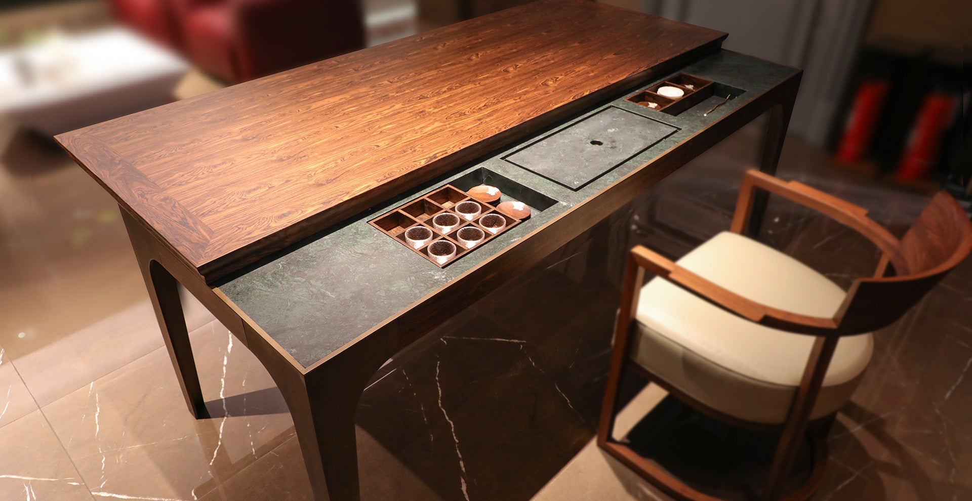 Our showroom presents a curated selection of bespoke furniture solutions—inviting contractors, designers, and discerning individuals to experience materials, details, and craftsmanship firsthand.