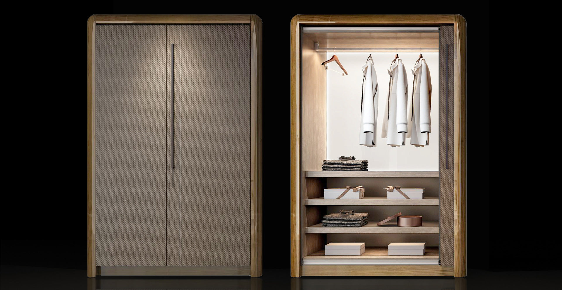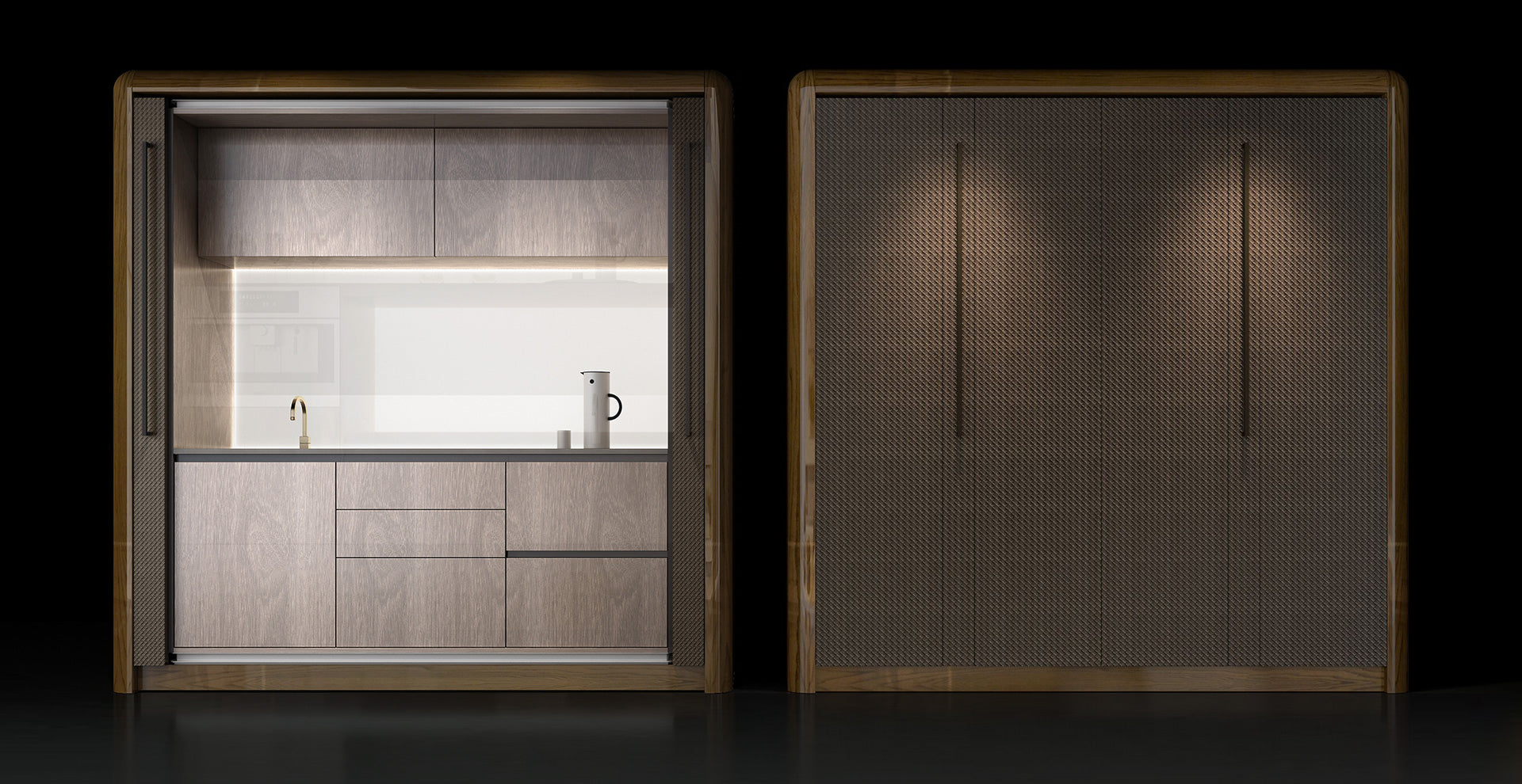 From kitchens and wardrobes to complete interior systems, each composition is defined by clarity of proportion, precision of execution, and the inherent depth of materials.