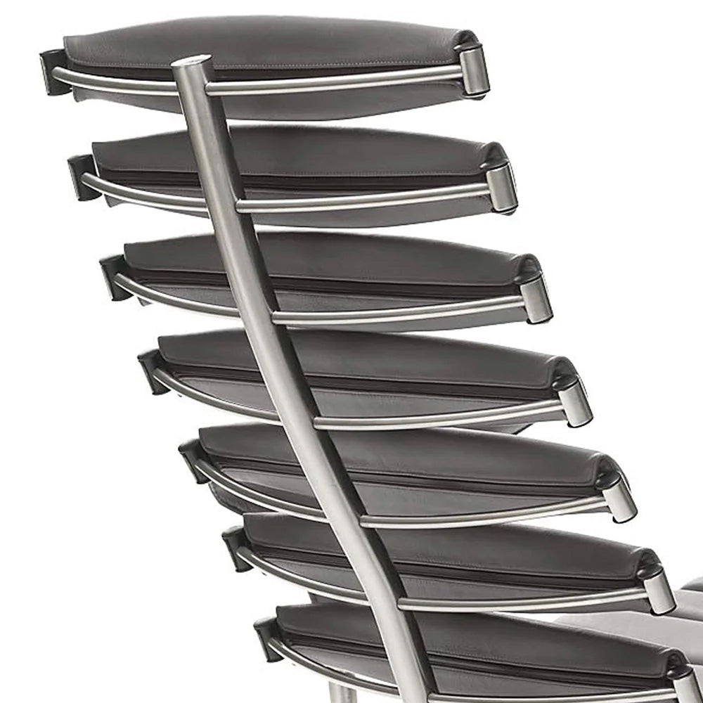 Futuristic office chair with a five-star base in brushed stainless steel. Base finish in black.