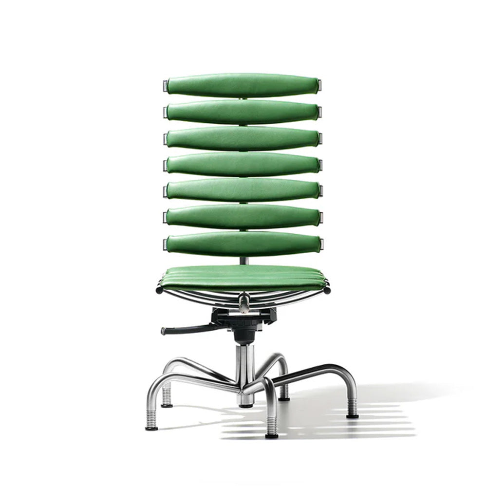 The DS-2100's slats, made of the finest leather, adapt to the individual body shape and provide a hugging feel for maximum comfort. Available as a swivel visitor chair with a low back, an executive chair with a high back, a headrest, a tilt mechanism, height adjustment, and casters, and a visitor chair with a four-star base.
